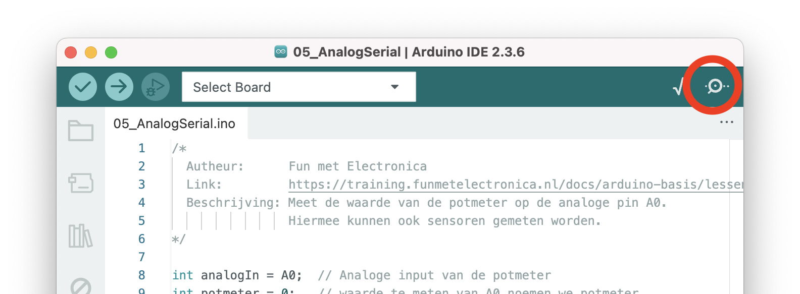 Link: https://training.funmetelectronica.nl/docs/arduino-basis/lessen/les-5-analogserial/