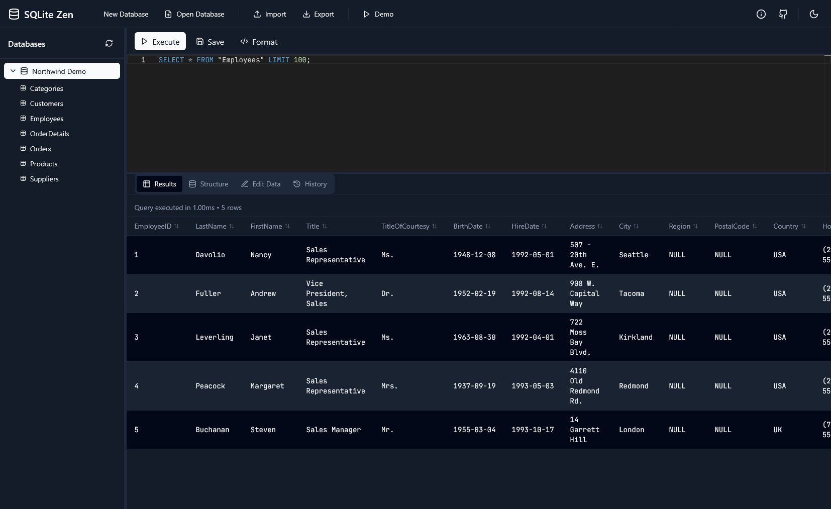 SQLite Zen is een online SQLite database editor.
