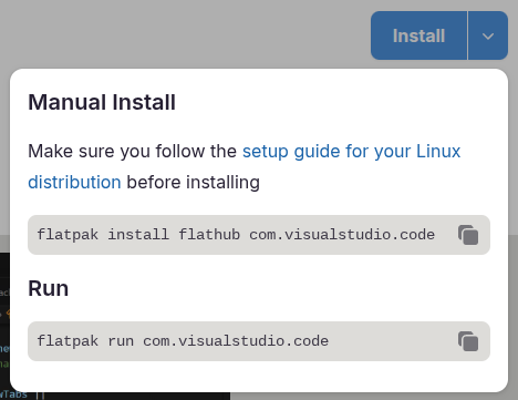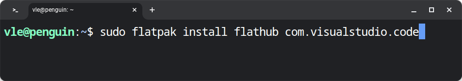 sudo(het voorbeeld hieronder wordt dansudo flatpak install flathub com.visualstudio.code)